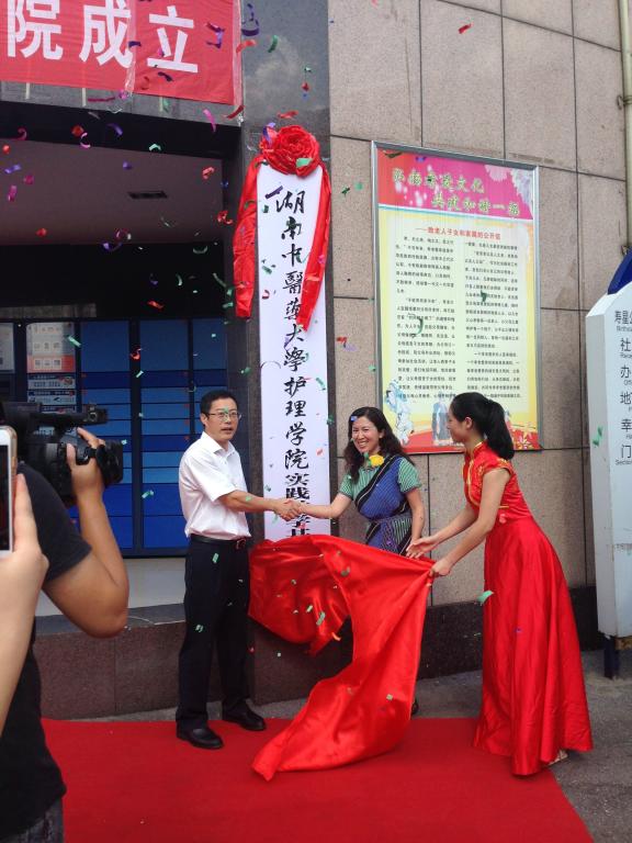 长沙市民政局局长陈昌佳与我院黄群副书记共同为中医药大学kaiyun体育官方网站登录实践教学基地揭牌。