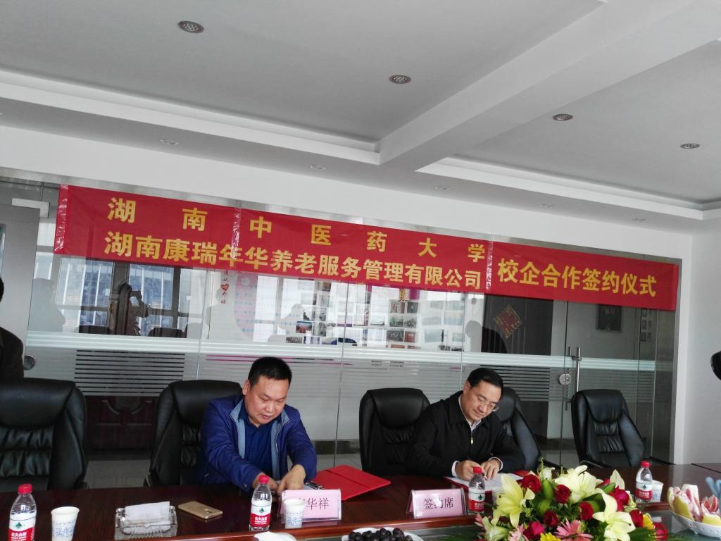2016年11月3日,在湖南康瑞年华养老服务管理有限公司总部,我校与公司签署产学研合作框架协议。校长秦裕辉教授、公司董事长李华祥先生在协议上签字。双方秉承平等互助、合作共赢的宗旨,顺应社会发展需求,发挥双方优势,展开全方位、多层次的合作。共同致力于提升养老机构从业人员专业化程度,制定行业服务标准,顺应我国人口老龄化、养老产业快速发展的大趋势。学校发改处杨生伟处长、kaiyun体育官方网站登录罗尧岳院长、管理与信息工程学院周良荣院长以及公司总经理屈泽伟先生出席签字仪式。