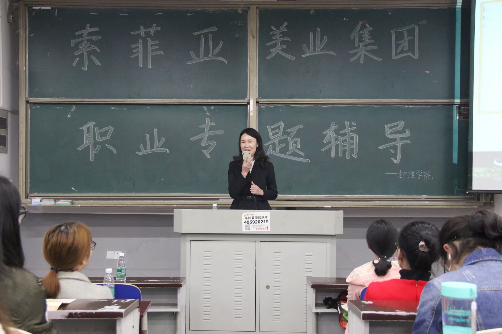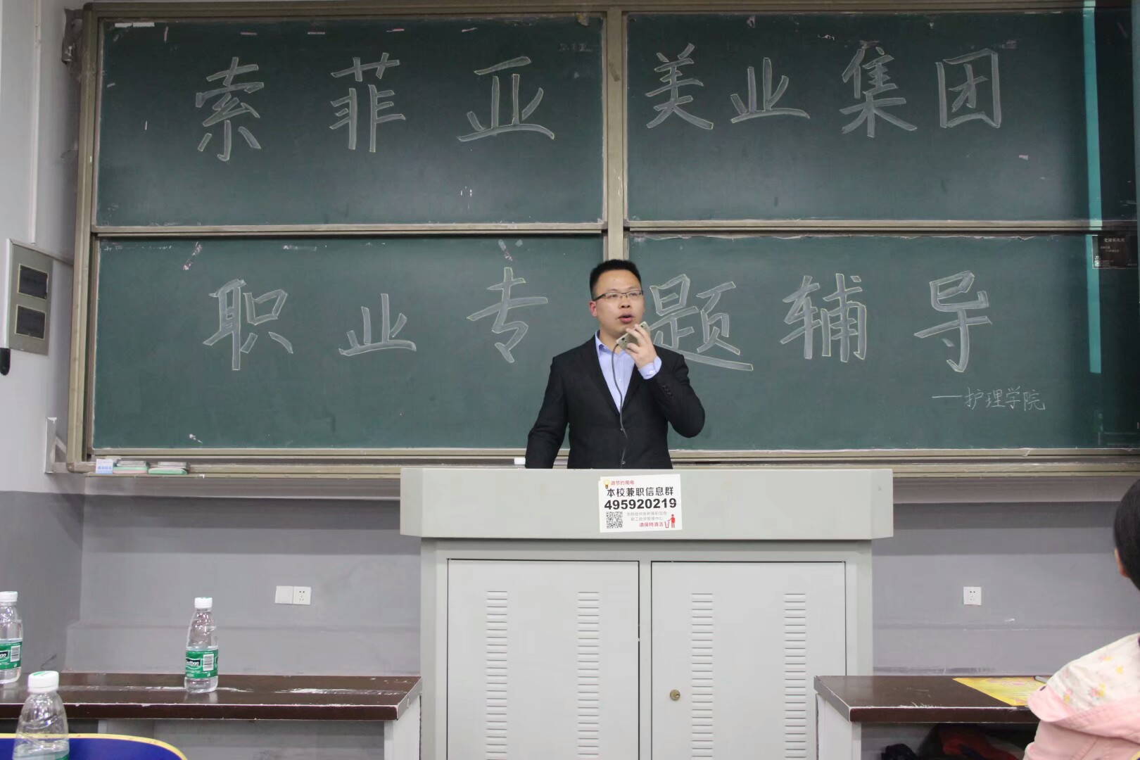 辅导会上,同学们认真观看了索菲亚美业集团宣传片,对美容、管理、创业等有了更加深入的了解。培训部相关负责人讲授了全球健康产业的发展及空间,职场人的要求等,吸引了同学们的关注。会后,学生们进行了面对面的答疑,从职业态度、职业规划、职业待遇等方面进行了深层辅导。