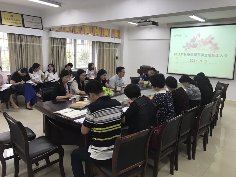 2017年9月3日,我院在学院会议室召开2017年秋季新学期全院职工大会,罗尧岳院长主持会议,学院全体教职工参加此次会议。