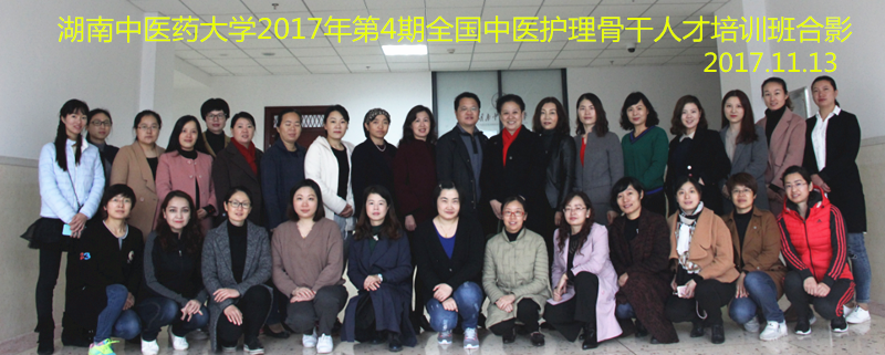 2017年11月13日,由我院承办的第四期全国中医护理骨干人才培训班在我校3号教学楼3406教室隆重开班,来自全国各省市的护理骨干人才27人齐聚一堂。我校省级教学名师常小荣教授、kaiyun体育官方网站登录院长罗尧岳教授,副院长刘娟教授,副书记黄群女士参加了此次培训班开班仪式。仪式黄群副书记主持。罗院长致欢迎辞,学员代表山东省滨州市中医院赵同贞发言。