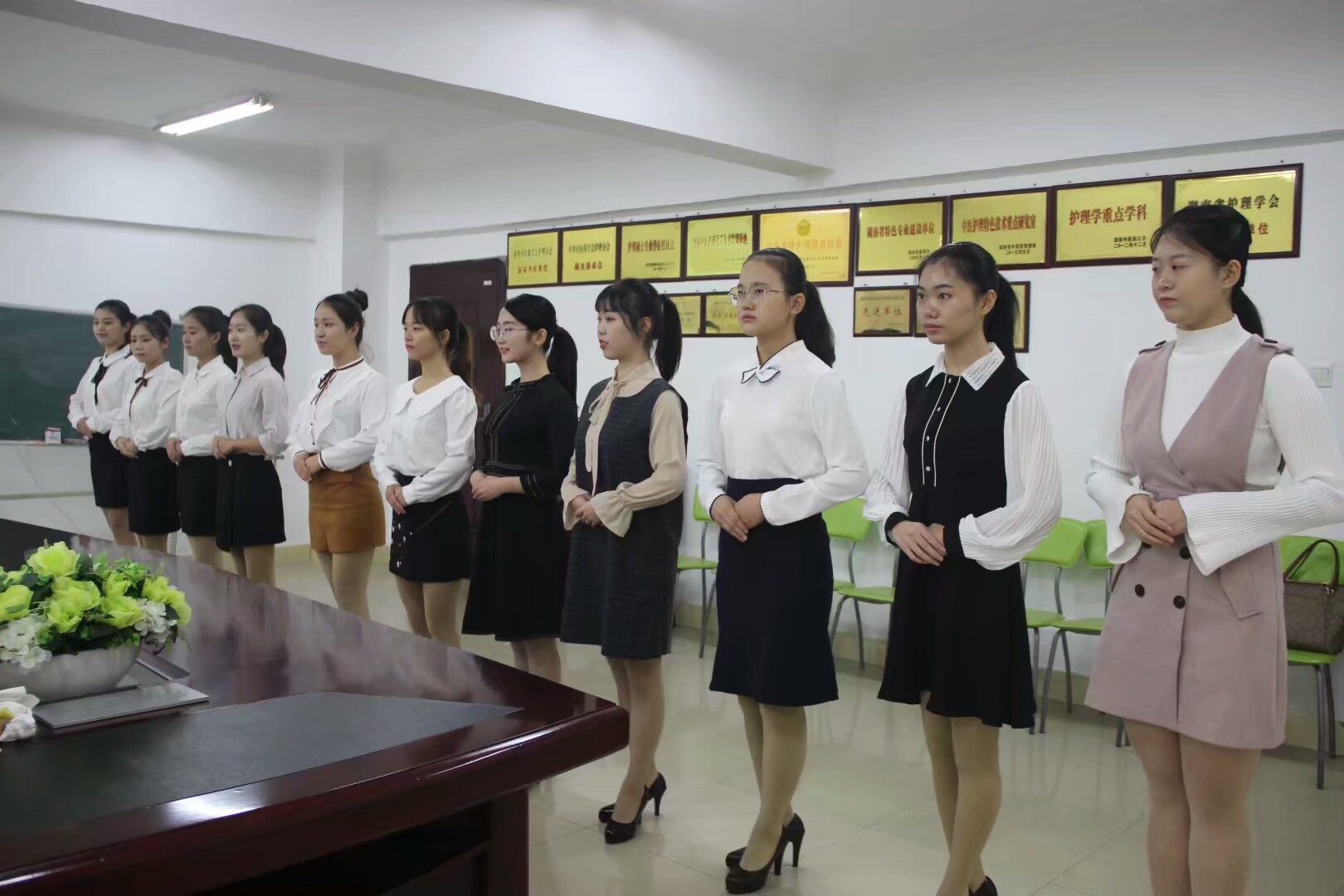 此次招聘会分为就业招聘和实习招聘面试两个部分,各位面试者测量完净身高后依次排队进入会议室进行面试。在本次招聘会中我院学生从学习成绩、课余活动情况和所获荣誉情况等方面介绍了自己的优势及特长,积极主动回答面试官提出的问题,通过大方得体的表现和优异的成绩取得了面试官们的一致好评。在通过层层选拔后,中南大学湘雅三医院最终录取我院2位研究生、6位毕业生和27位实习生。