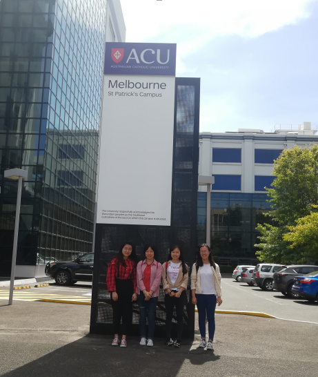 我院参加国家留学基金委国际优秀本科生项目的4名学生学生唐曼、蒋凤、阮晓婷、金彩于2018年2月24日全部抵达澳大利亚天主教大学墨尔本校区,开展为期3个月的交流学习。26日上午九点,健康管理学院老师Nancy Zhang 与学生进行了交接,为她们安排并介绍了三个月的学习课程以及如何通过网上学习完成学习任务,随即带领学生参观了护理技能培训中心、图书馆等校园设施。