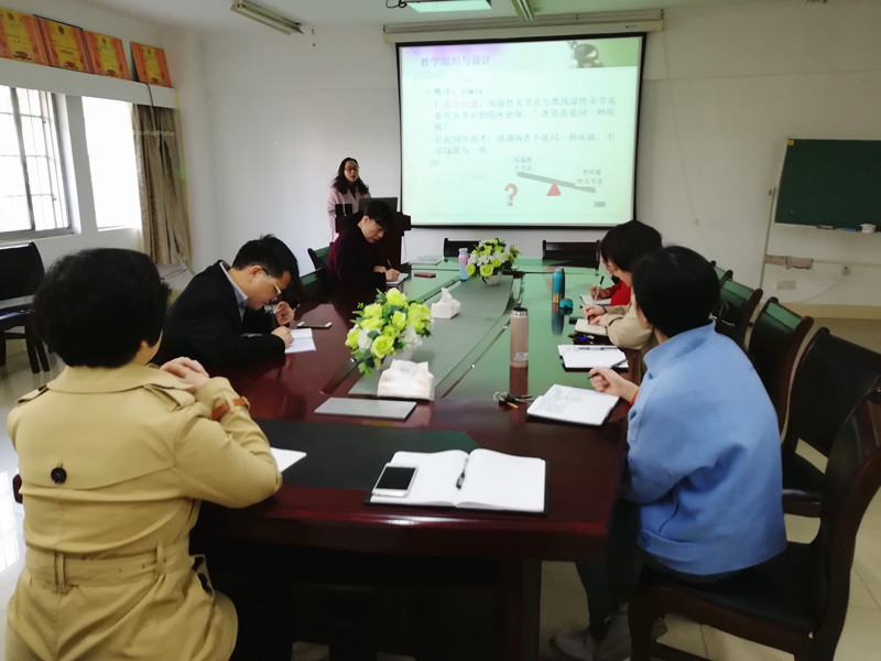 陈偶英教授对内科护理教研室开展教研活动的基本情况以及承担的《内科护理学》课程的教学情况做了介绍,外请教师杨硕博士选取了其承担的《内科护理学》课程中“类风湿性关节炎患者的护理”,对学时安排、各教学内容的讲授时间安排、授课思路等进行了说课汇报,并选取其中类风湿性关节炎的临床表现进行了讲授演示。针对杨硕博士的教学安排和授课,督导组各位教授高度赞许集体备课这一教研活动形式,建议在学院广泛开展,并对杨硕博士的讲授给予了高度肯定,但同时也指出了一些不足之处,如各教学内容的讲授时间安排上应加重疾病护理内容的讲授时长,减少疾病发病机制和病理内容的讲授时长;完善PPT的制作等。杨硕博士也非常感谢内科护理教研室提供本次集体备课学习交流平台,也非常感谢各位教授的中肯意见,表示一定认真备课,不断完善教学计划,提高教学质量。