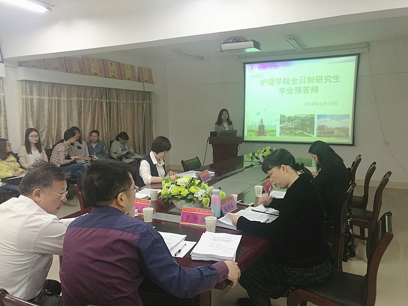 2018年5月10日,我院举行2018届护理专业学位硕士研究生毕业预答辩,学院邀请中南大学杨土保教授、中南大学湘雅二医院李乐之教授、kaiyun体育官方网站登录医学院伍参荣教授以及我院罗岳尧教授,陈偶英教授、蒋小剑教授和潘晓彦教授参加了预答辩,为2018届毕业研究生毕业论文严格把关,提高质量。