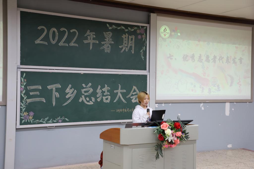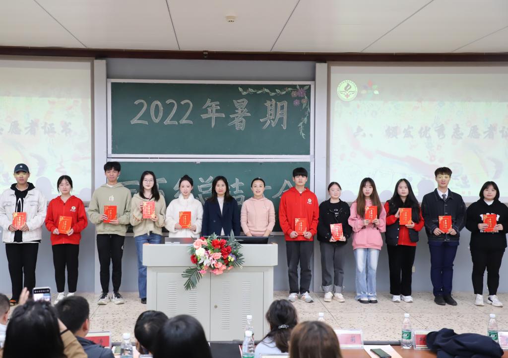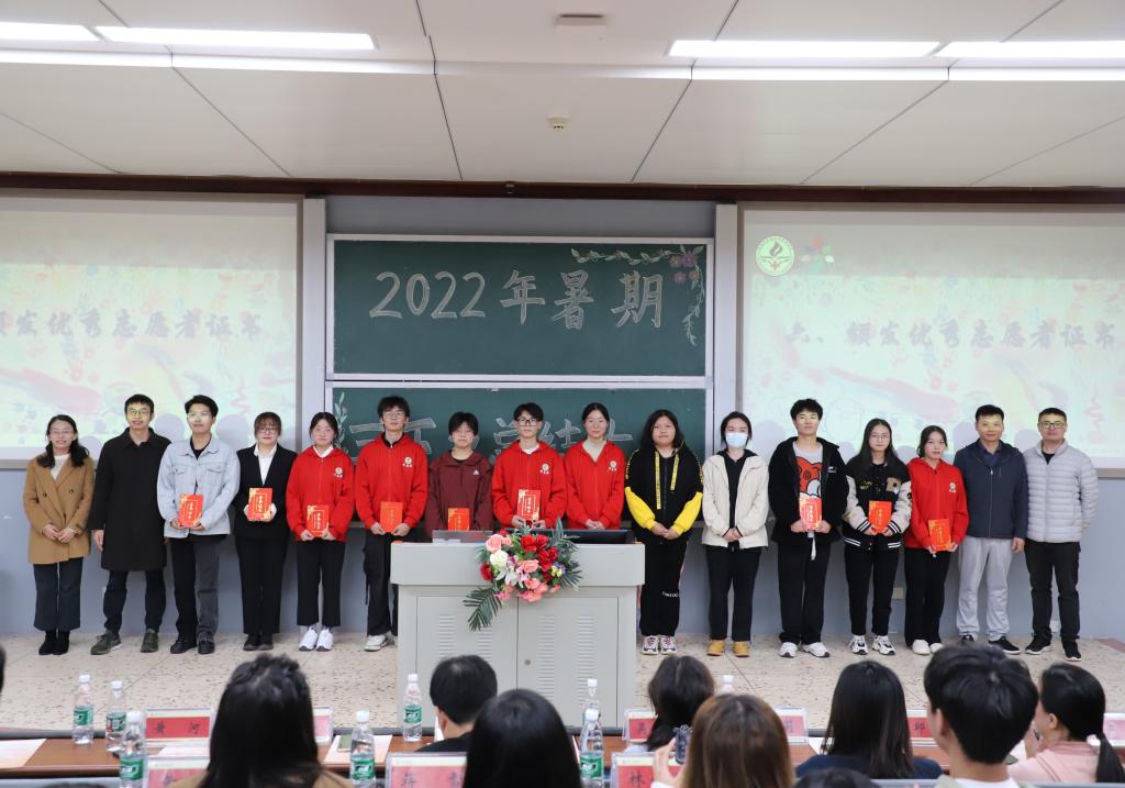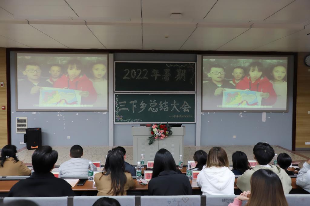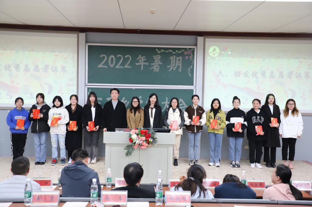 会议伊始,一段2022年暑期三下乡活动的视频勾起了大家的回忆,视频画面与旁白一同叙述着kaiyun体育官方网站登录暑期三下乡活动于杜家坪村民、kaiyun体育官方网站登录学子、青年志愿者群体的意义。会议第二项议程,由罗院长致辞,对认真筹备活动的所有志愿者成员表示感谢的同时,指出每年进行三下乡活动不仅是kaiyun体育官方网站登录学子的一次社会实践机会,更是回应村民们期盼的一次次手把手的帮扶、心与心的连结。会议第三项议程,由暑期三下乡活动负责人代表吴美琳同学对2022年三下乡活动做总结汇报,她对青年志愿者在沅陵当地为期一周的义诊、支教及调研活动做出总结汇报,并表示青年七日之旅硕果累累,七日之事值得一辈子记住。会议第四项议程“情感同心,相伴同行”系列活动,志愿者们将自己写给小朋友的信件与明信片有序投入信箱,并观看来自杜家坪九校小朋友们的视频《我想对志愿者哥哥姐姐们说的话》,一句句简单的祝福、一些些点滴的回忆,是孩子们赤诚的心意。在志愿者刘慧敏同学上台分享用“互联网+”与小朋友与结对的经历后,会议开始进行第五项议程,领导老师们为在2022年暑期三下乡活动优秀志愿者颁发证书并合影留念。随后,会议第六项议程,优秀志愿者代表彭辉艳、毛郁含讲述自己参与本次活动的感悟与体会。会议最后,由志愿者们带来合唱节目《我爱你中国》,在志愿者们激情饱满、朗朗动听的歌声中,本次会议圆满结束。
