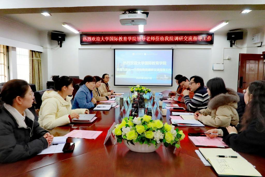 3月22日下午,国际教育学院来我院调研对外交流合作项目。国际教育学院院长田雪飞,国际交流与合作处副处长刘洁,国际教育学院教务科科长尹明,国际交流与合作处外事科副科长冯玉,国际交流与合作处外事科宁歌一行莅临。学院在家领导班子成员,办公室及相关科室负责人参加了此次调研。会议由院长陈偶英主持。