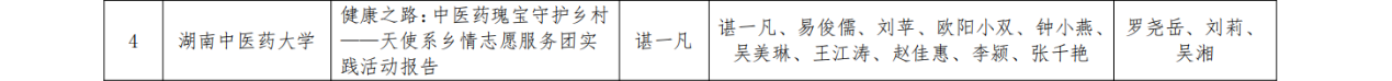 其中,我院由罗尧岳、刘莉、吴湘老师指导、谌一凡负责的《健康之路:中医药瑰宝守护乡村——天使系乡情志愿服务团实践活动报告》获第十五届“挑战杯”湖南省大学生课外学术科技作品竞赛红色专项特等奖。