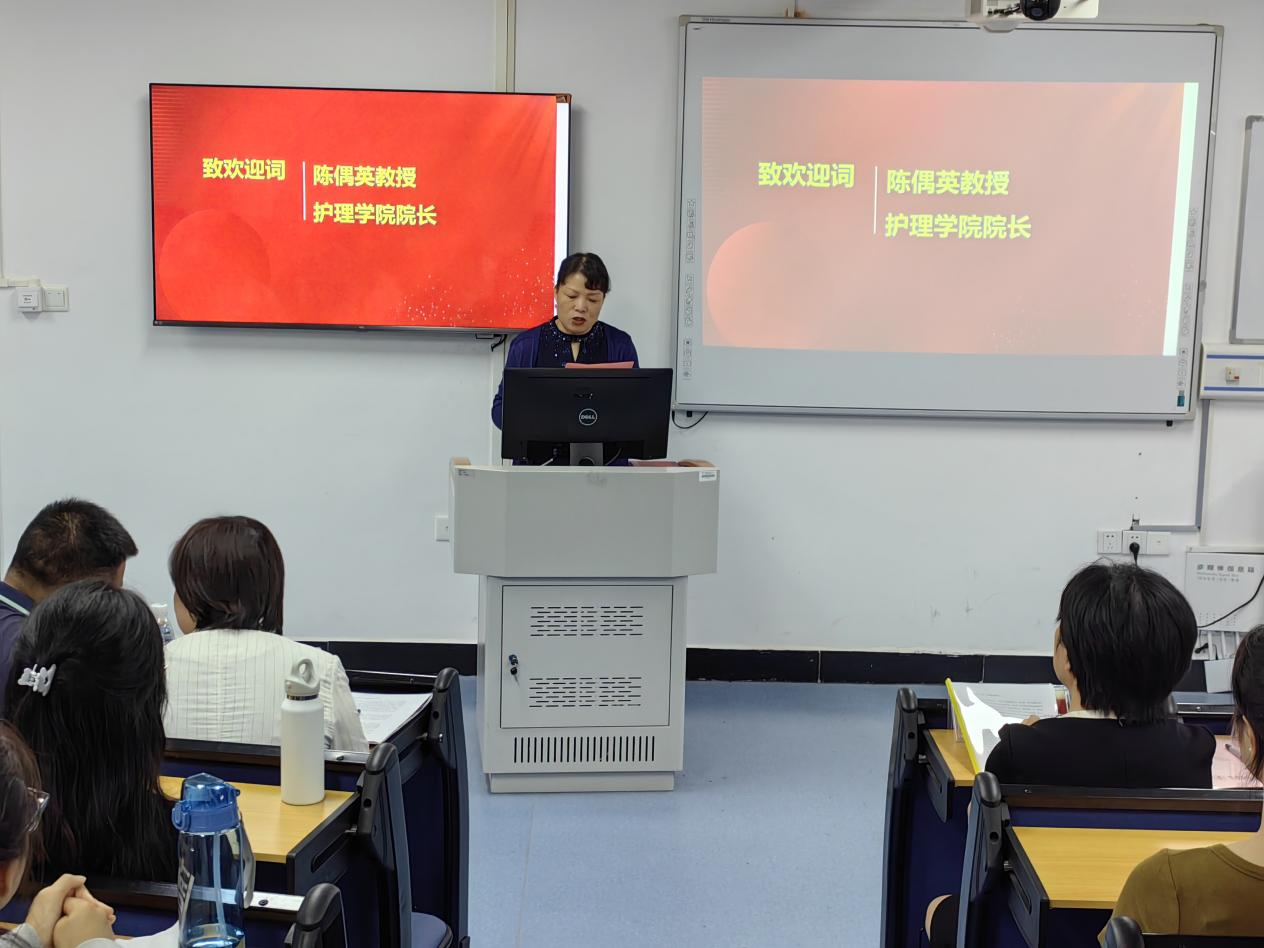 为加强我院研究生新生与学院之间的交流,在学院与同学们之间建立起一座沟通的桥梁,我院于9月13日下午在护理实验中心示教室举行了研究生新生见面会。此次见面会由我院辅导员周密主持,学院党委书记罗尧岳、院长陈偶英、图书馆副馆长潘晓彦、副院长蒋小剑、党委副书记吴湘、副院长李春艳以及科教科科长陈红涛、63名2023级研究生参加了此次见面会。本次见面会旨在将研究生培养与管理的相关事宜有效部署,促进学院与研究生新生之间的沟通交流。
