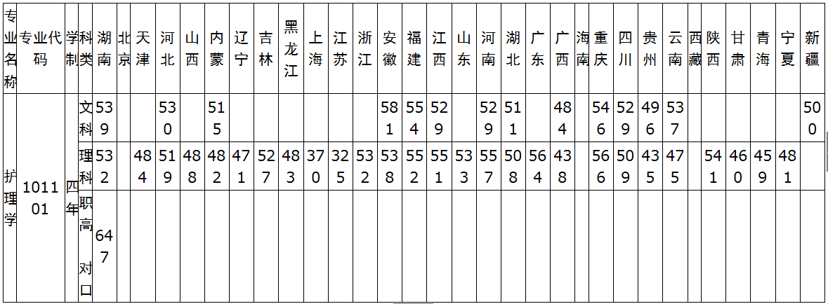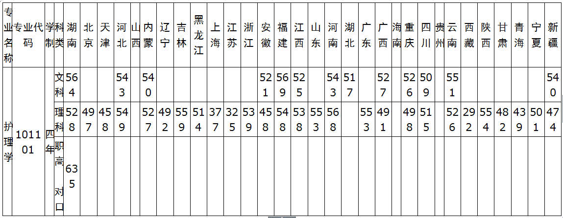 2014年护理专业各省录取分数线