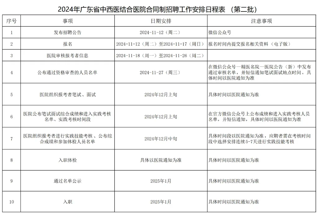 附件3:2024年度广东省中西医结合医院招聘日程表(第二批)