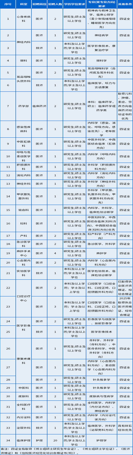 8.工作经历要求:2024年及以前往届毕业生须现工作单位为三级公立医院。
