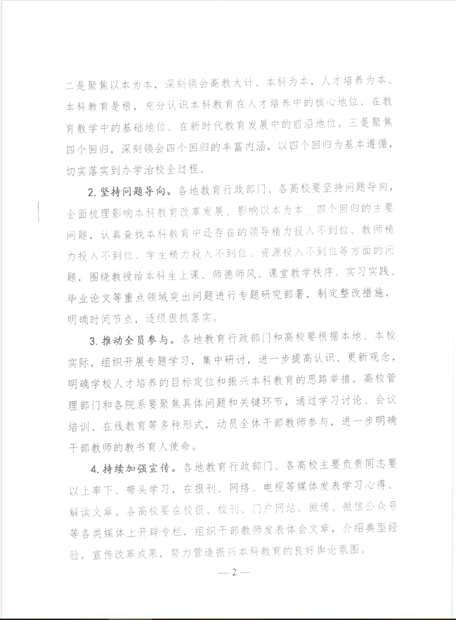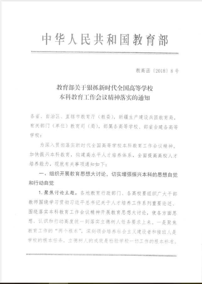 转发教育部关于狠抓新时代全国高等学校本科教育工作会议精神落实的通知
