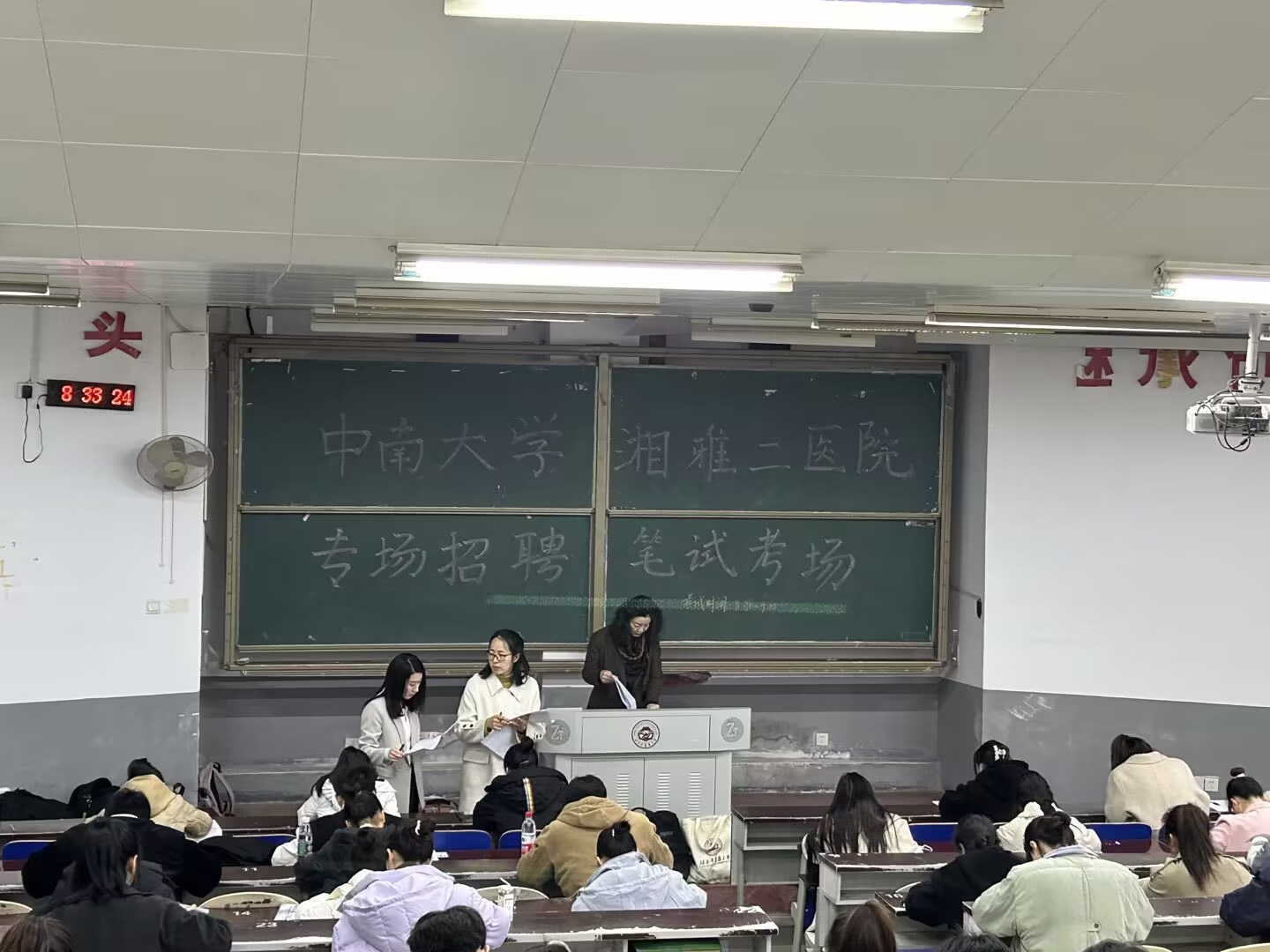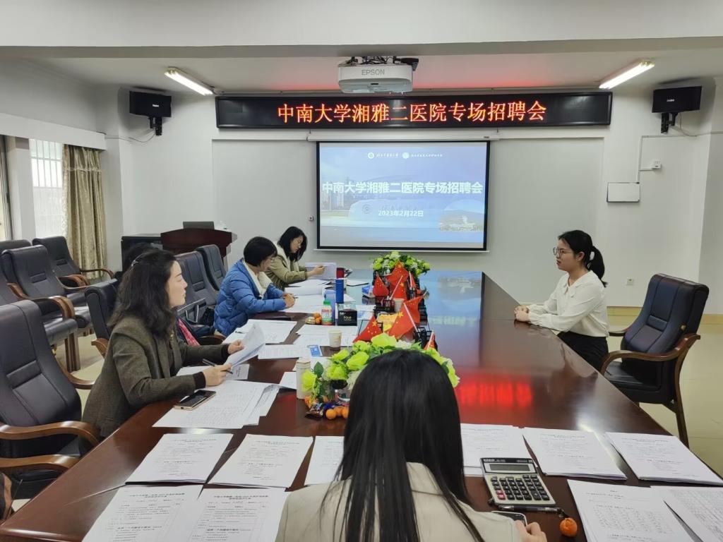 2月22日,中南大学湘雅二医院在我院开展了专场招聘会。湖南省护理学会的专家、中南大学湘雅二医院人力资源部的领导参加了此次招聘。本次招聘共分为笔试和面试两个环节,共有100余名研究生、本科生参加了此次招聘。