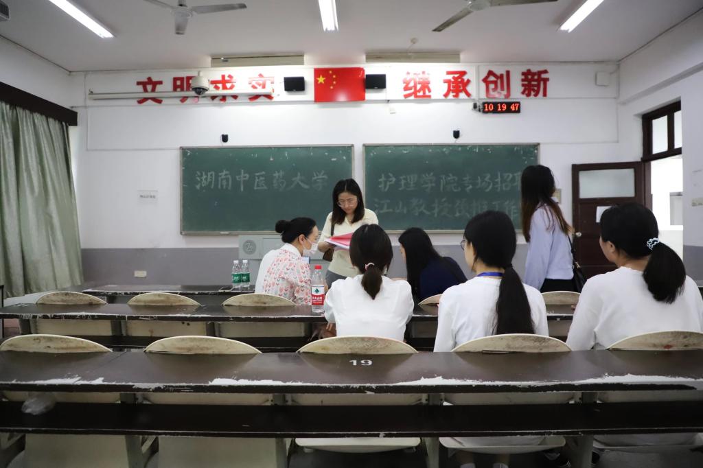 面试环节中,同学们谈吐大方、得体,充分体现了湖中大学子的良好风采,江山教授颈椎工作室的招聘人员对我院学子赞叹有加,已有多位毕业生收到了用人单位的录取通知。