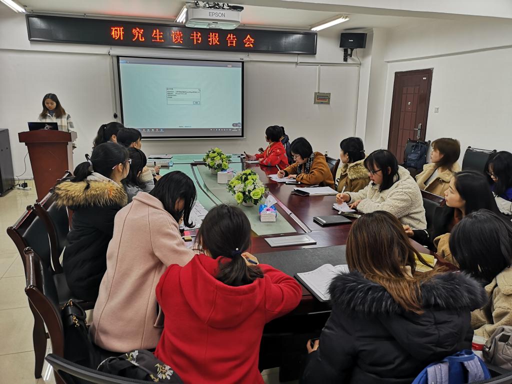 2019年2月27日下午,我院在学院会议室迎来了开学来的第一次研究生读书报告会,会议由陈偶英副院长主持,学院老师和全体研究生参加了此次会议。